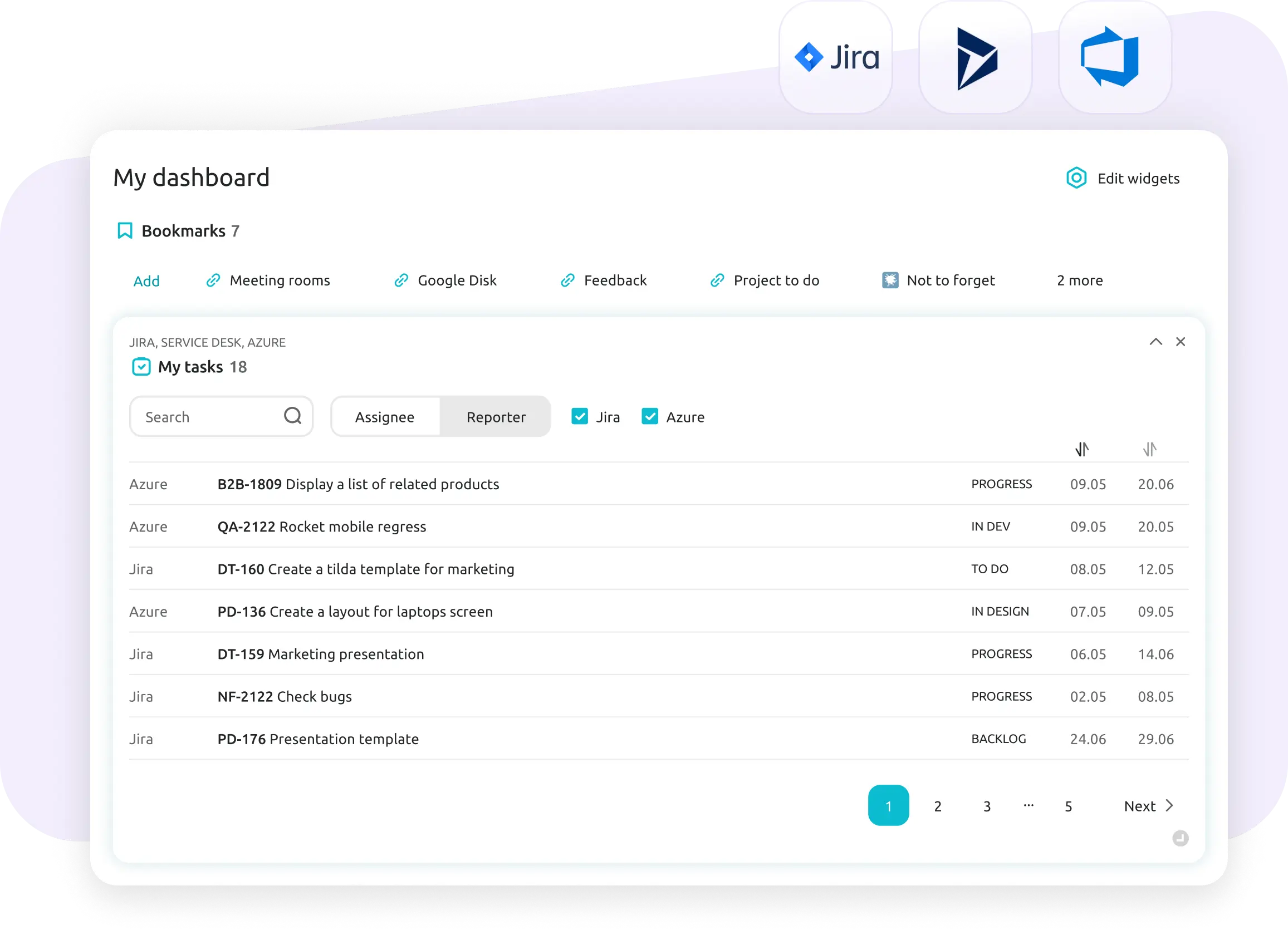 Connect HubNet with task manager like Jira and employees would be able to plan the day observing all the tasks they have right on HubNet dashboard.